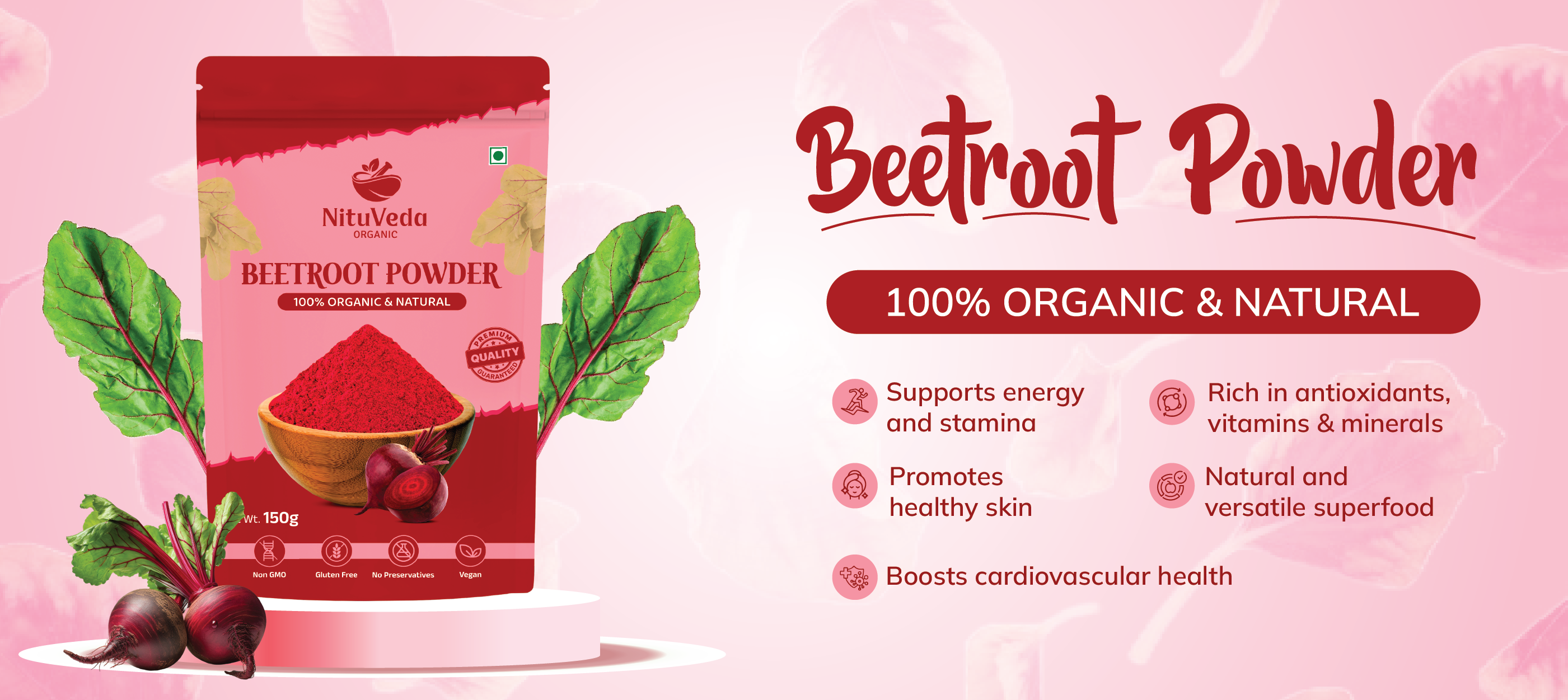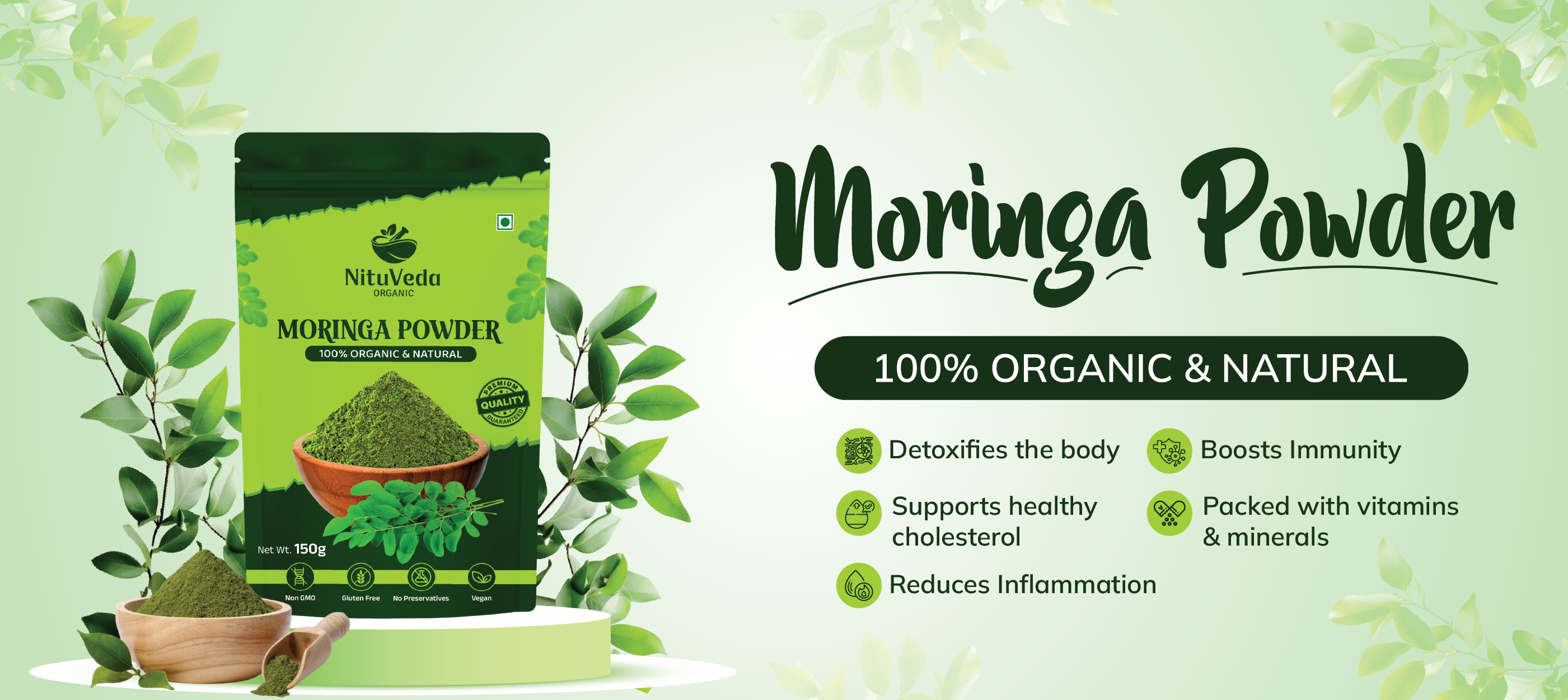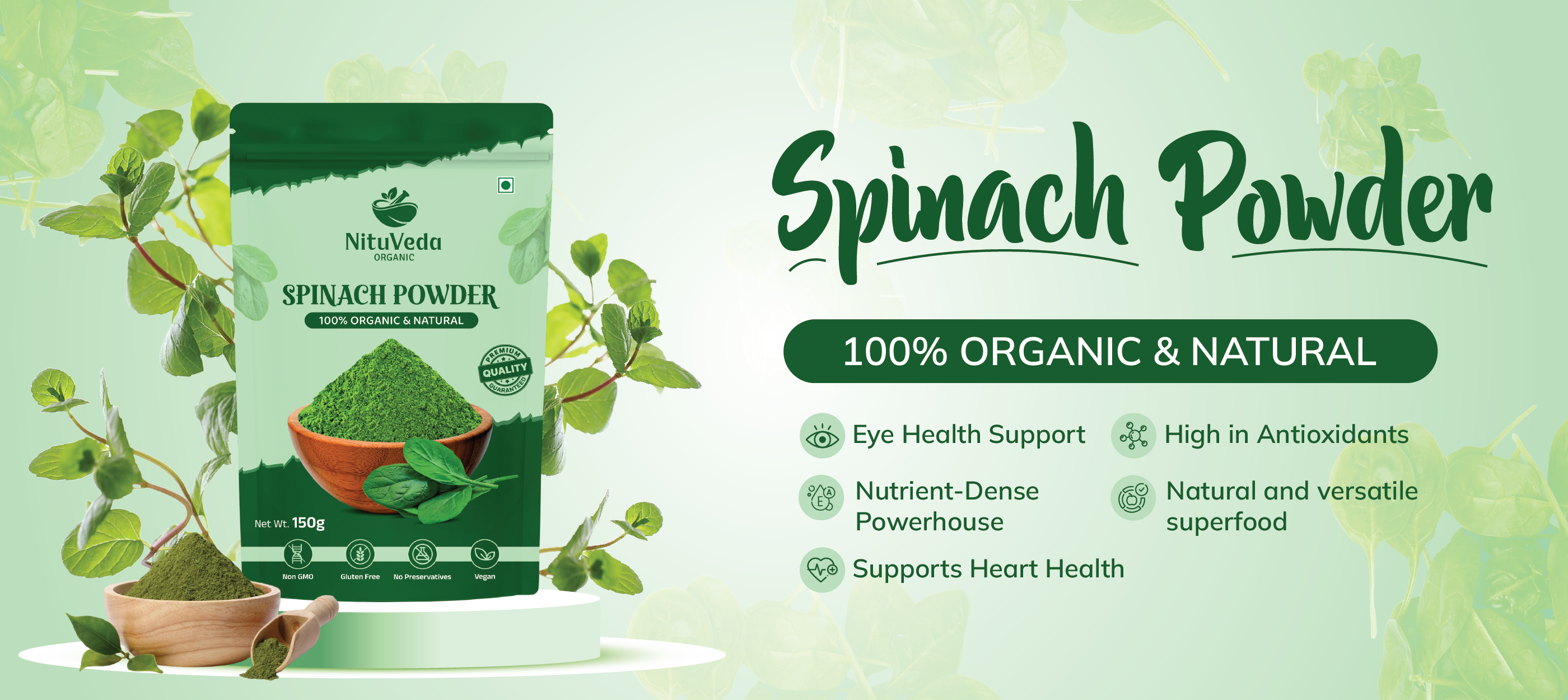 NituVeda is a well-known producer, exporter, and retailer of Spinach Powder, Wheatgrass Powder, Amla Powder, Beetroot Powder, Moringa Powder etc. Our products are processed by our specialists to ensure their quality and shelf life within a highly safe setting. Based in Vadodara, Gujarat, we are based in the hub for organic powder production.